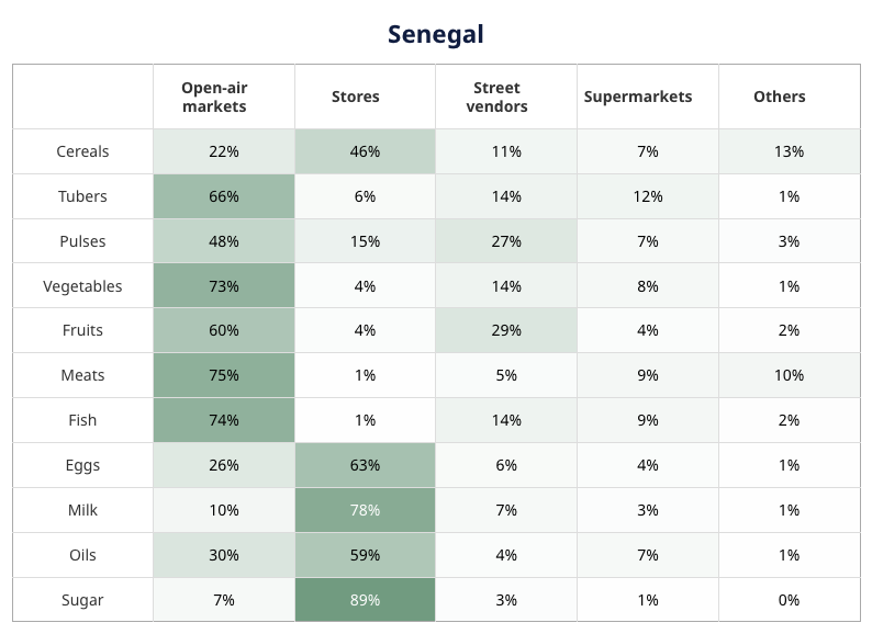 Consumers now purchase food from a wider range of outlets, with traditional open-air markets no longer dominating. In Mali and Senegal, 30–40% of food purchases occur at street vendors and retail stores.